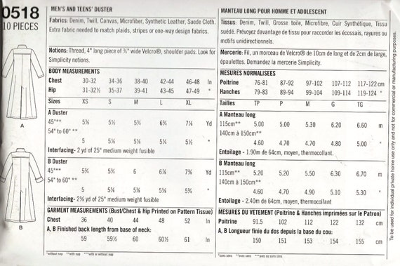 Simplicity 5386 0518 Costume Matrix Duster Long Trench Coat Etsy