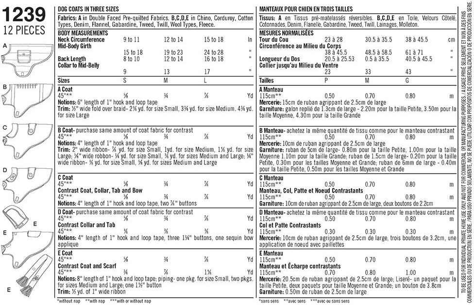 Simplicity 1239 Size A Dog Coats In 3 Sizes Sewing Pattern Multi Colour Us1239a A S M L Patty Martin Designs Amazon Co Uk Home Kitchen