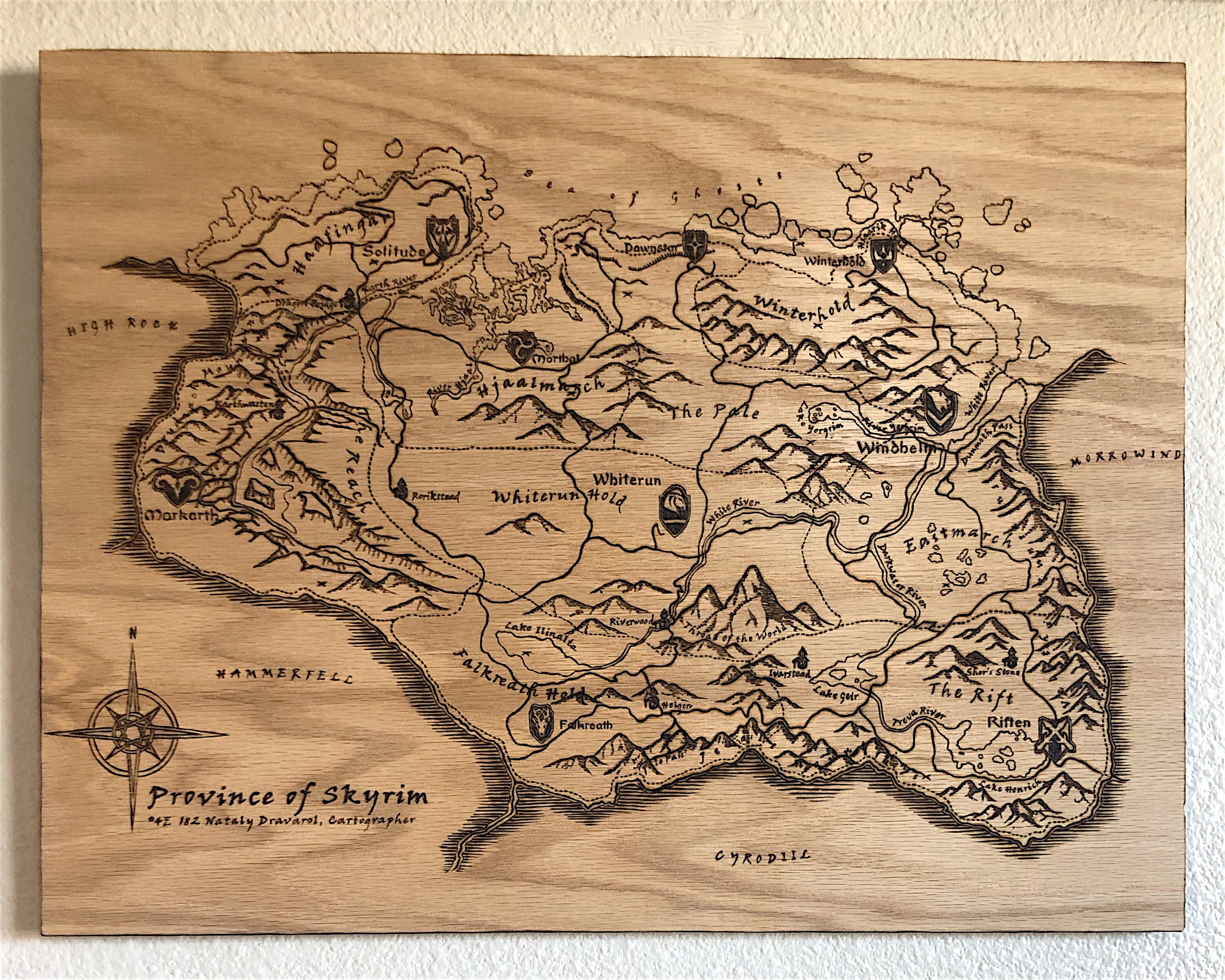 Province Of Skyrim Woodburning Map Red Oak Pyrography Map Etsy Uk